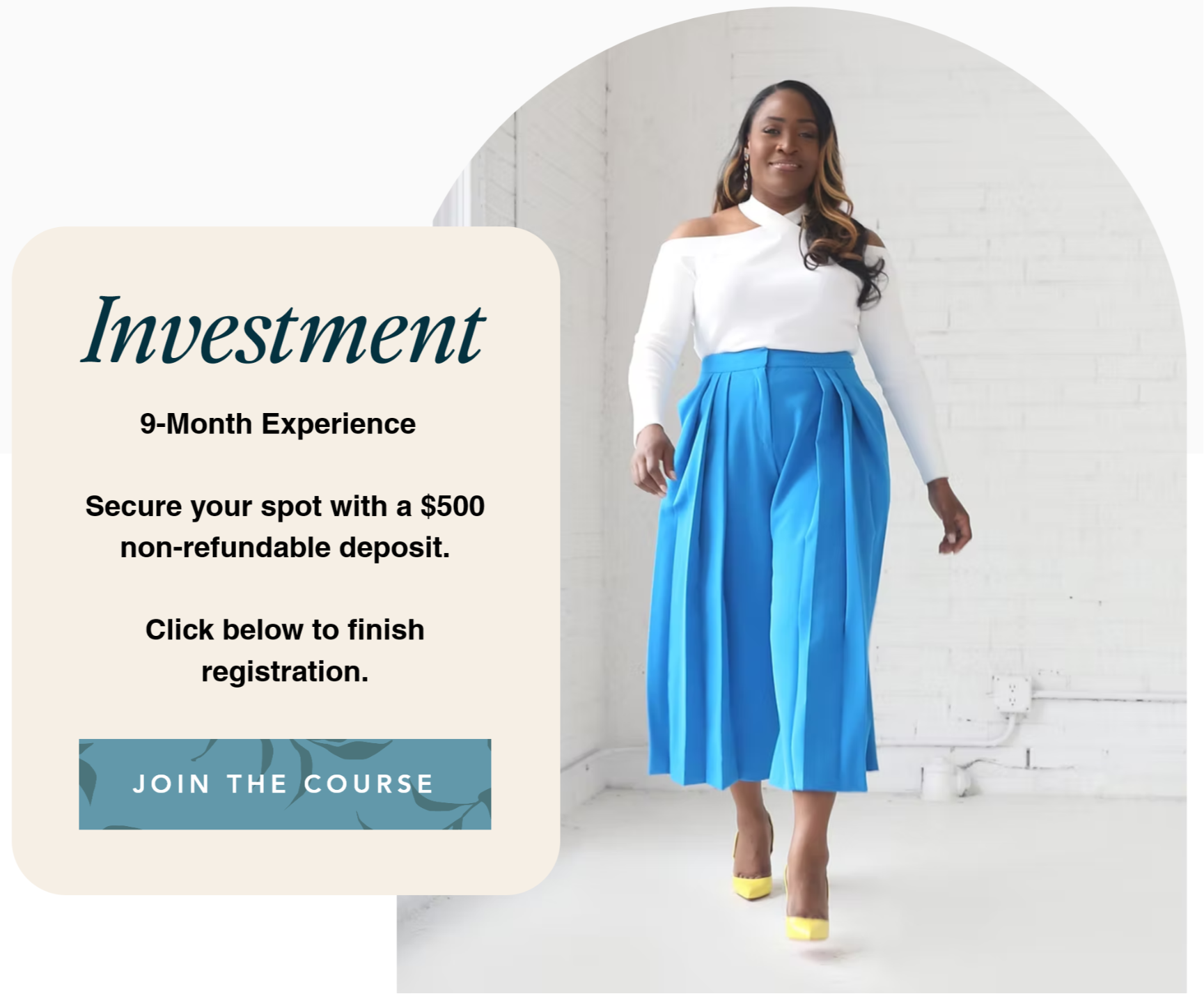 <Discuss removing this section to make this page have 1 CTA with pricing tiers listing what's included in the course or embed ebook form here if they say no>